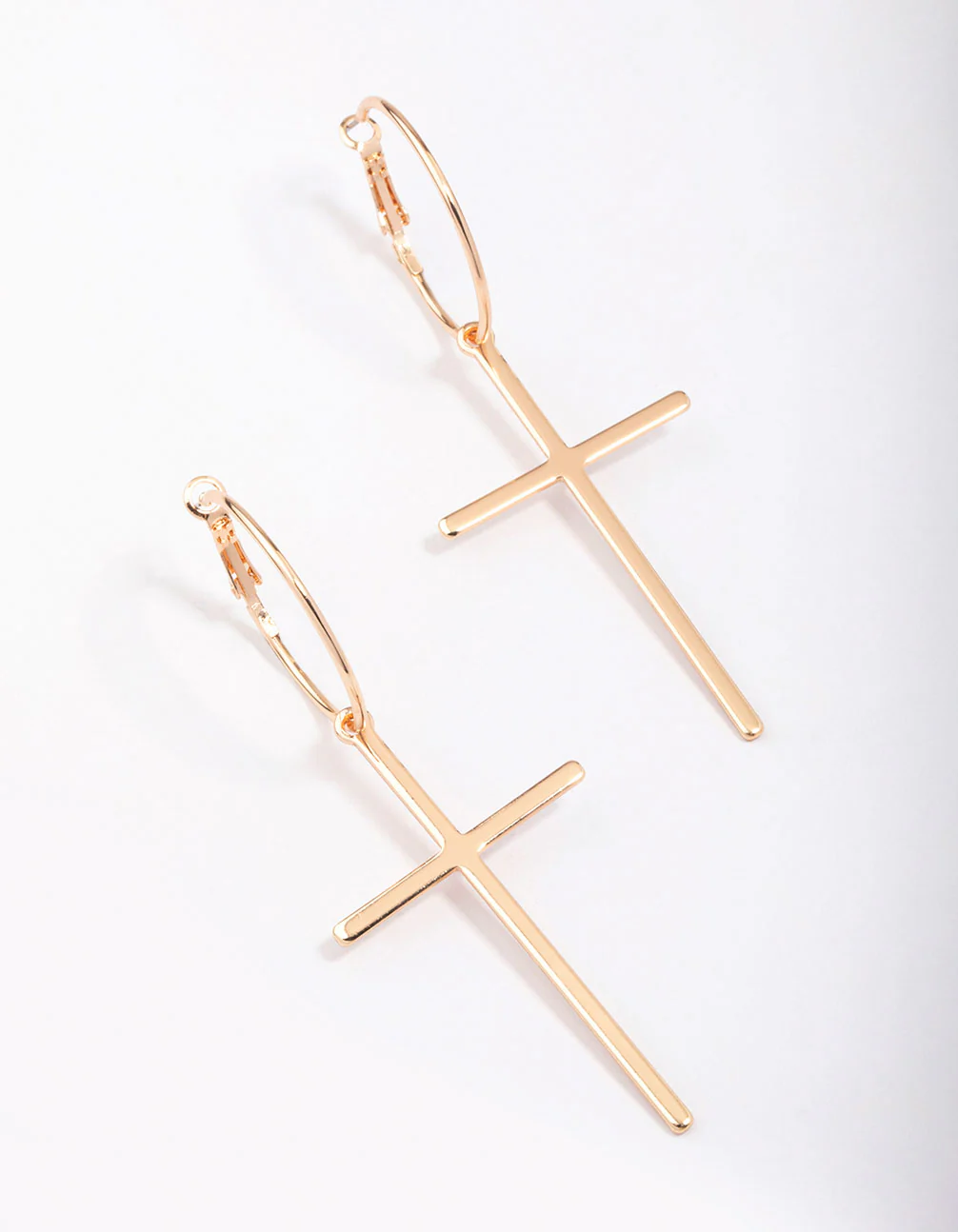 - These simple gold-toned hoop earrings are adorned with a thin cross motif for a refined finish to your look.