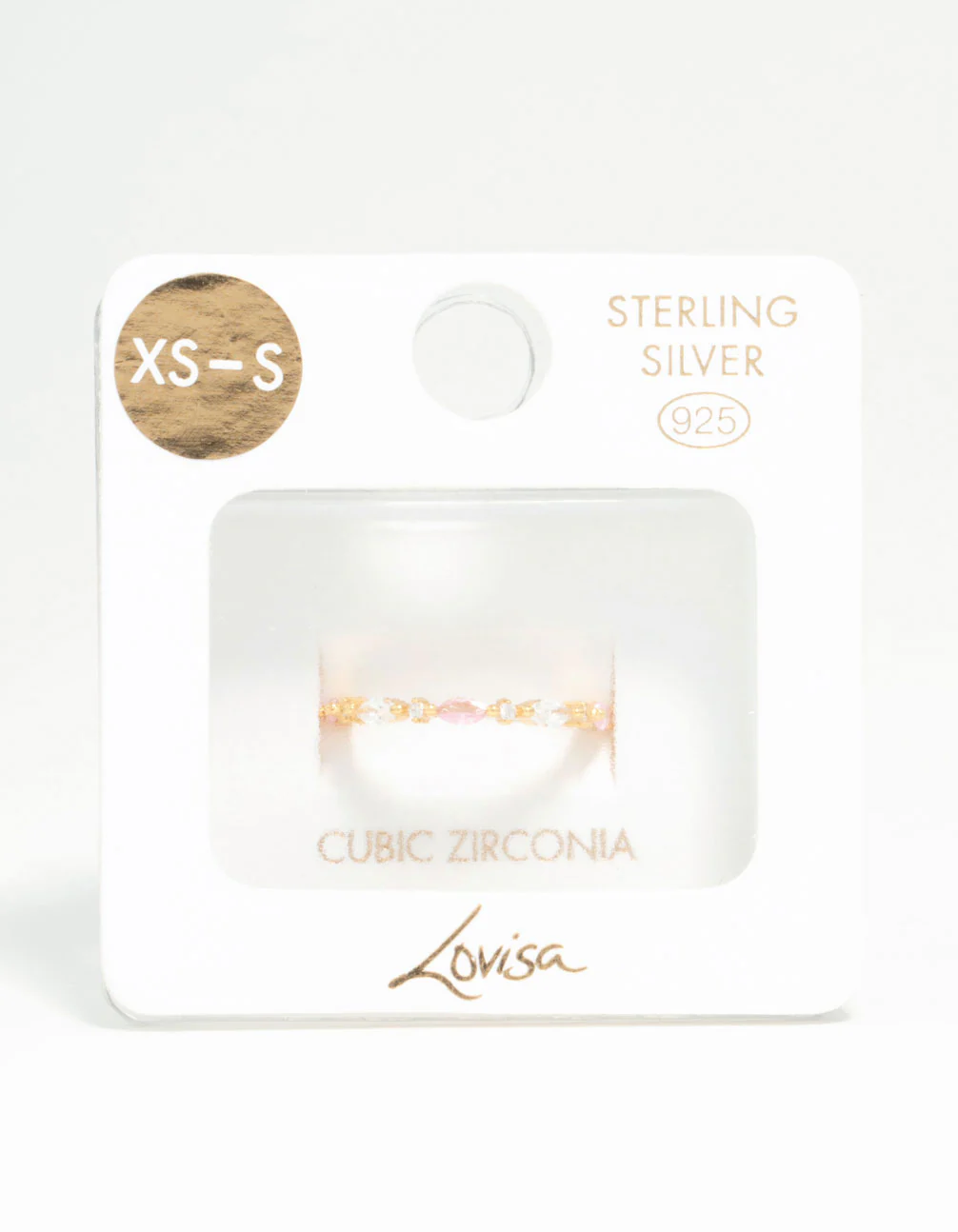 Immerse yourself in the allure of this gold-plated sterling silver ring. It's alternating pink & silver cubic zirconia stones create a gorgeous sparkly look. Its sleek silhouette exudes sophistication, ideal for solo wear or stacking.