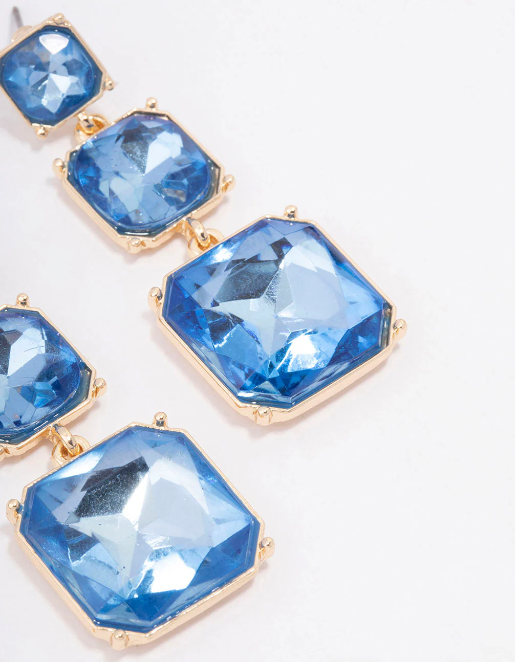 Style these Gold Triple Square Stone Drop Earrings with a set of simple studs for a layered look.