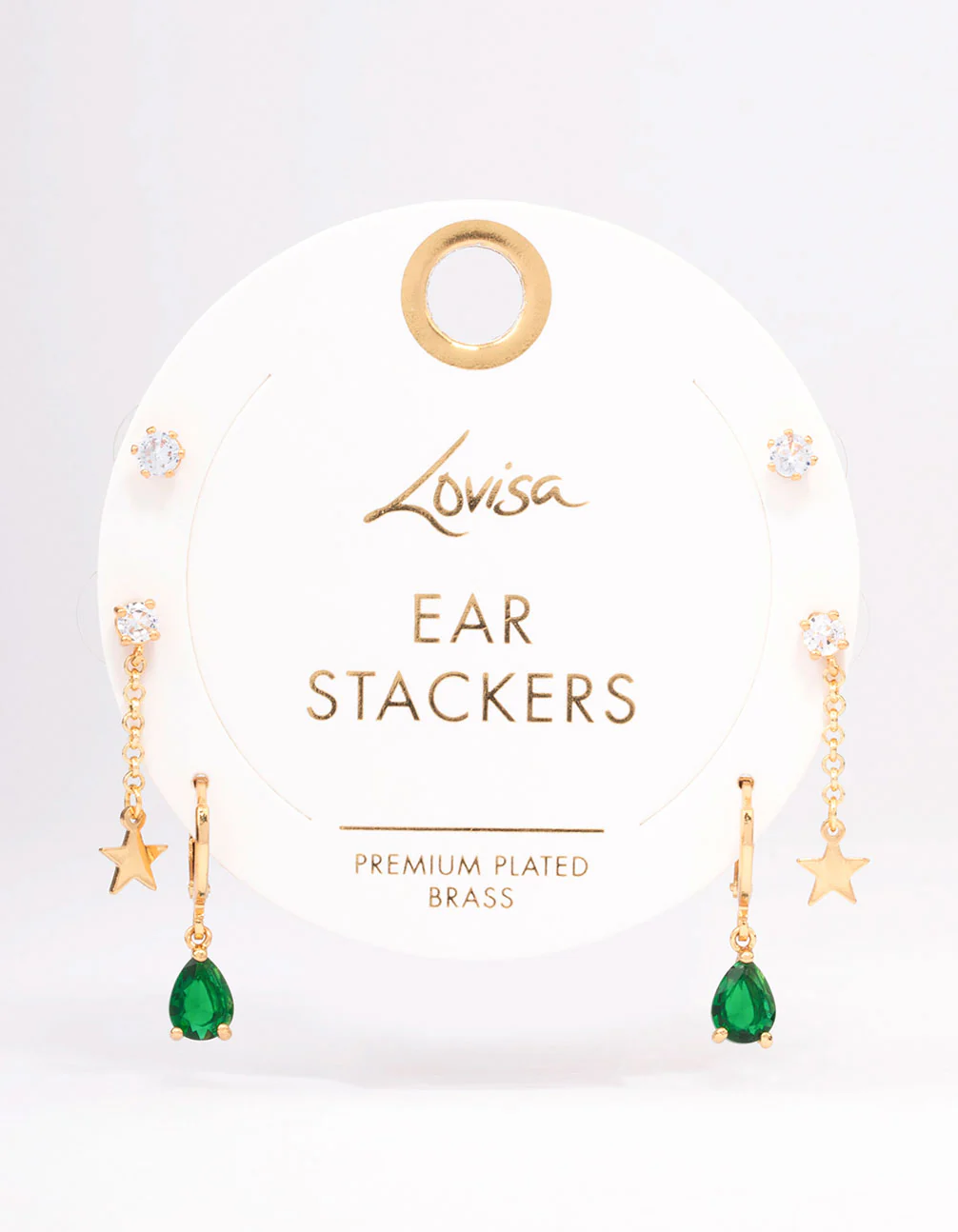 Gold Plated Brass Star Chain Earring 3-Pack