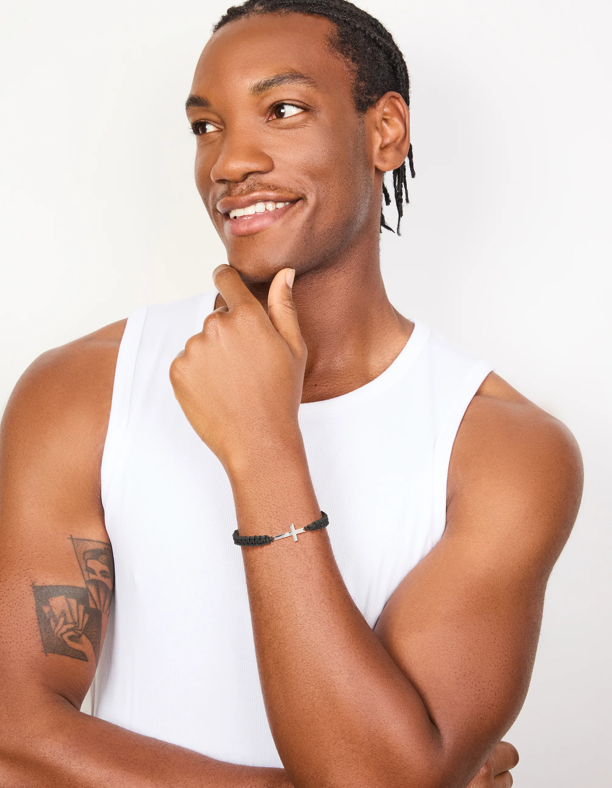 Elevate your everyday style with this Waterproof Stainless Steel Cross Black Cord Toggle Bracelet. This sleek bracelet combines a modern black cord with a bold stainless steel cross, creating a masculine yet versatile look. Designed for durability, it’s sweat, swim, and shower-proof, making it perfect for active lifestyles. Whether you’re heading to the gym, a casual outing, or a night out, this bracelet adds effortless edge to any outfit. Pair it with a leather jacket for a rugged vibe or keep it simple with a classic tee and jeans. The adjustable toggle ensures a comfortable fit, while the waterproof stainless steel guarantees long-lasting wear. A stylish and practical accessory for men who want jewellery that works as hard as they do!