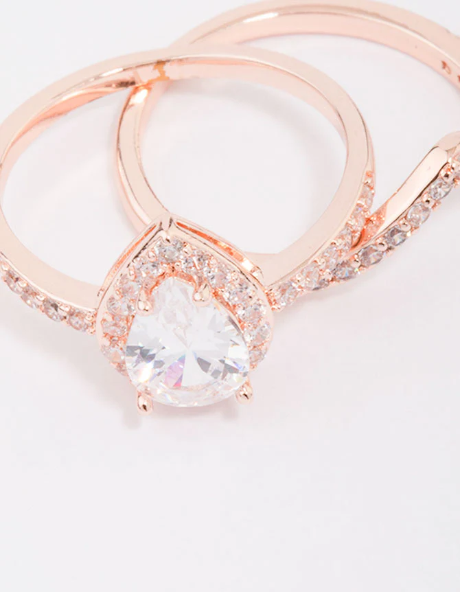 Rose Gold Crowned Pear Diamante Ring